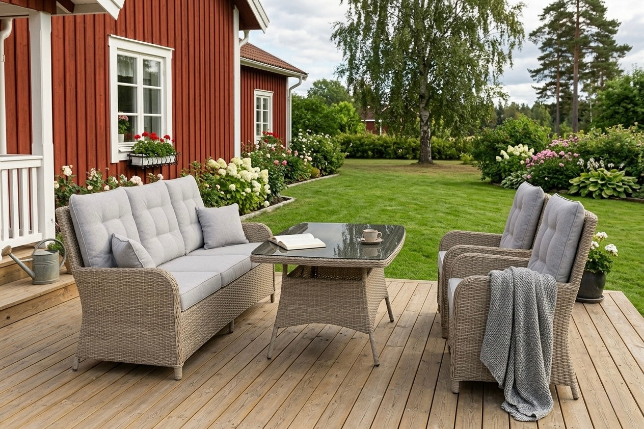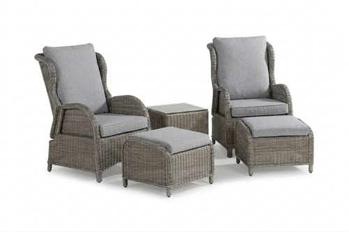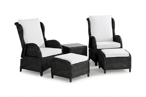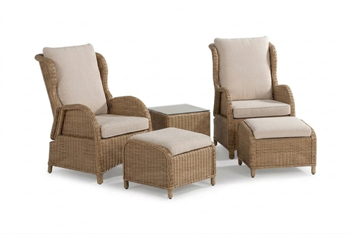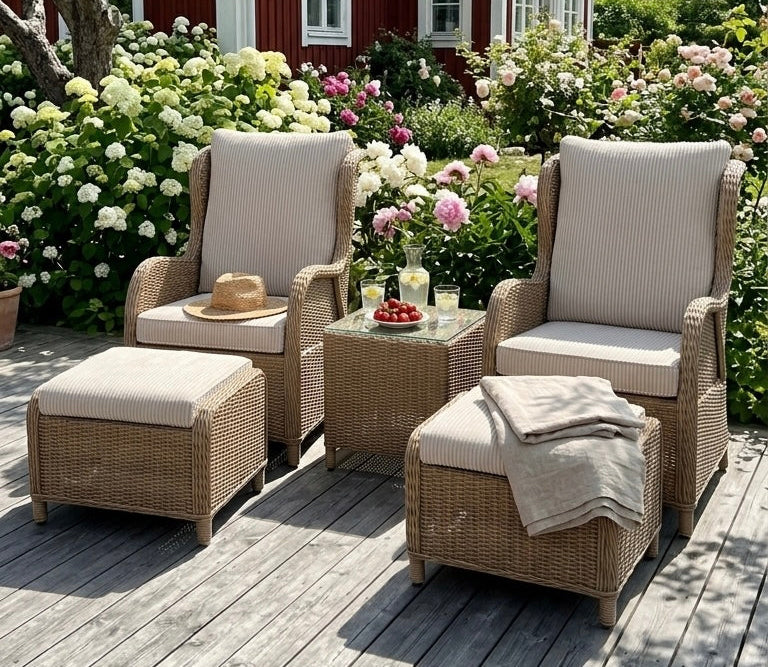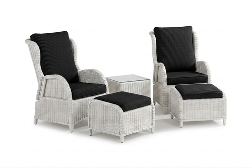 Calm balcony caféset - 2 fåtöljer + bord & fotpall